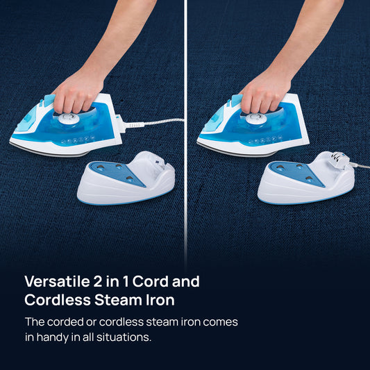 Wipro Elato GS206 2in1 Cord Plus Cordless Steam Iron|Dry&Steam Iron|1250 Watts|Scratch Resistant Ceramic Soleplate|Vertical&Horizontal Steaming|Anti Calc|Anti Drip|Autoclean Tech|2 Years Warranty