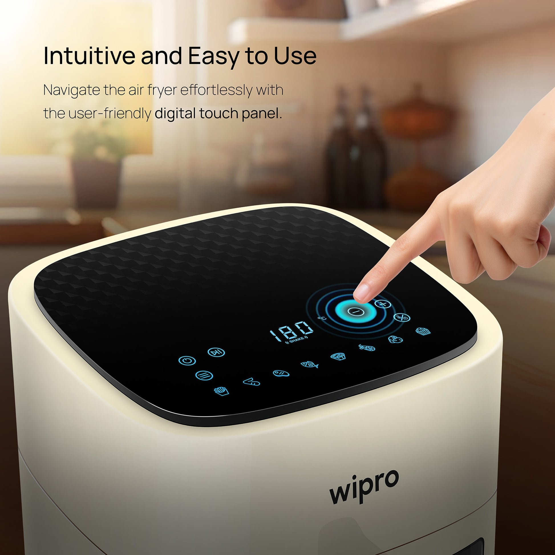 Special Feature: Programmable, Temperature Control, Timer Product Dimensions: 37.2D x 29.8W x 29.5H Centimeters Colour: White Capacity: 4.2 litres Material: Acrylonitrile Butadiene Styrene (ABS) Recommended Uses For Product: Bake, Reheat, Roast Output Wattage: 1200 Watts Item Weight: 4000 Grams Wattage: 1200 Watts Voltage: 230 Volts Control Method: Touch Model Name: Wipro Elato CAF201 Digital Air Fryer 1200 W 4.2 Litre Controller Type: Hand Control Is Dishwasher Safe: Yes Size: 4.2 Litre Item model number: EAB221120